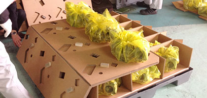 内装構造を見直し、無駄のない設計を行うことで1つの梱包材により多くの製品を入れることが可能に。これにより40Fコンテナーの製品輸送数が大幅にアップしました。